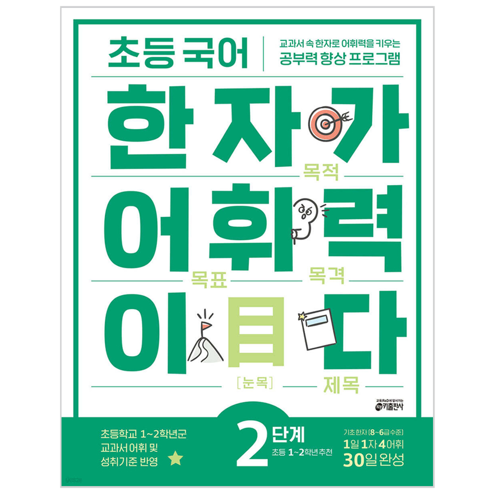 [키출판사] 초등 국어 한자가 어휘력이다 2단계 초등 1~2학년 추천 교과서 속 한자로 어휘력을 키우는 공부력 향상 프로그램