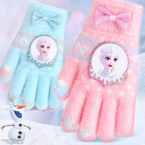 디즈니프린세스 겨울왕국 엘사 겨울 방한 니트 손가락 장갑(핑크)