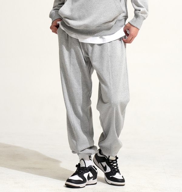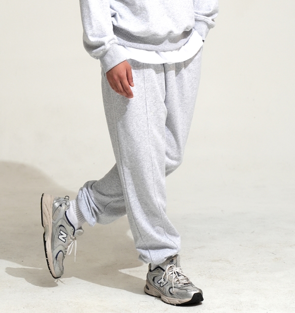 퀄리티높은 봉재 작업을 추가 하였으며 와이드 일자핏의 느낌과 조거팬츠의 특징을 살린 상품임 절개 맨투맨과 셋업구성하면 다양한 연출 가능