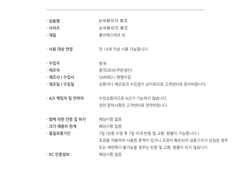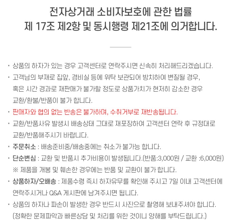 ※ 본 [상품정보고시]는 "상품정보 제공 고시"에 준하여, 의무적으로 표시하는 정보이며, [상품정보고시]와 [제품상세정보]의 내용이 일치하지 않을 경우에는 [상품정보고시]가 더 정확한 정보입니다.
