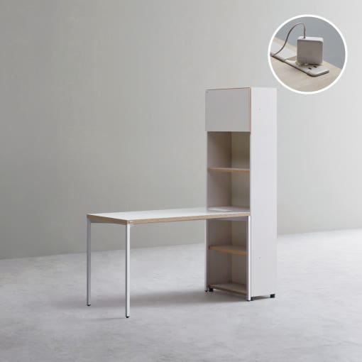 [데스커] 1400폭 콘센트형 책상+5단 책장 책상세트 (조명, 도어 포함) DSCJ145A...