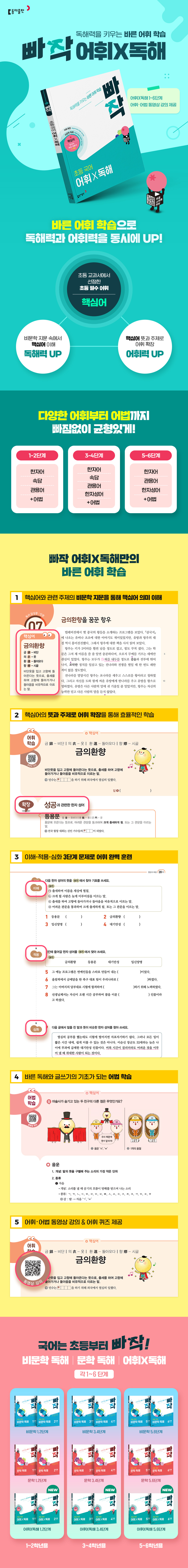 한자어, 속담, 관용어 + 어법에서 핵심어를 선정하였다. 핵심어 중심의 비문학 지문 독해 학습이 가능하며 핵심어의 뜻과 주제로 어휘 확장 학습을 할 수 있다.