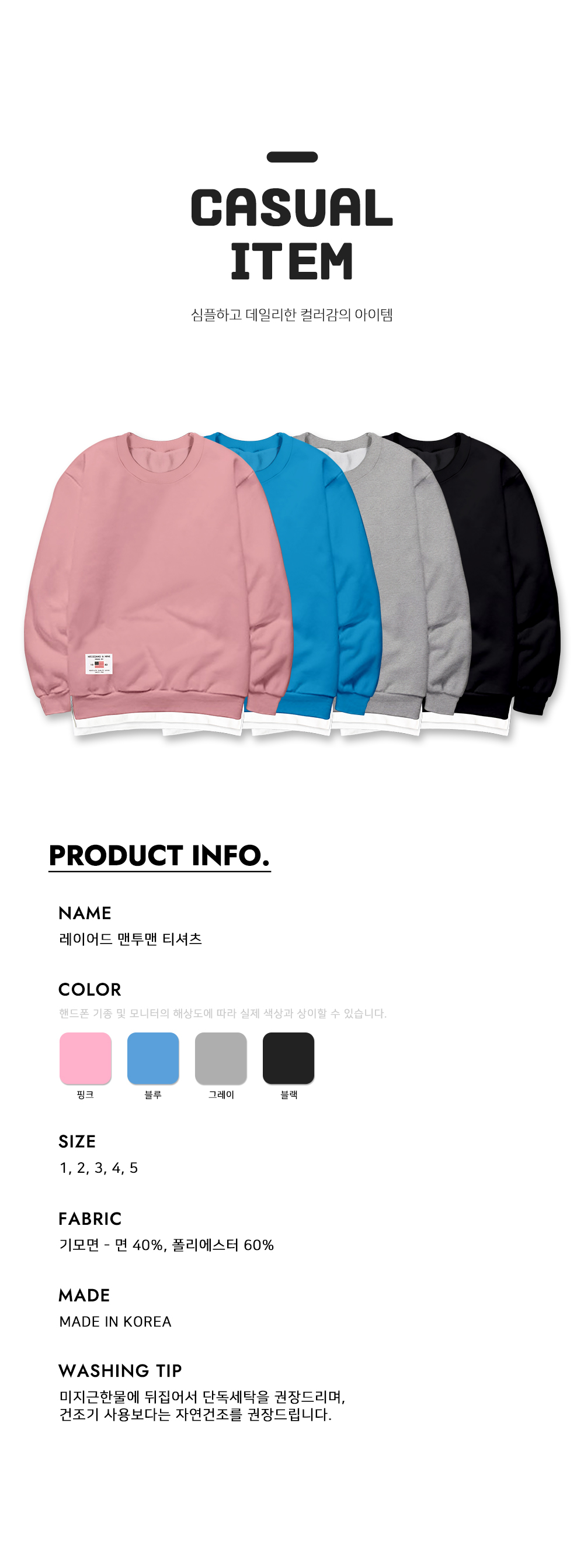 1+1(2PACK) 기모 맨투맨 레이어드 남여공용 스웻셔츠 긴팔티 홈웨어 일상복~3XL