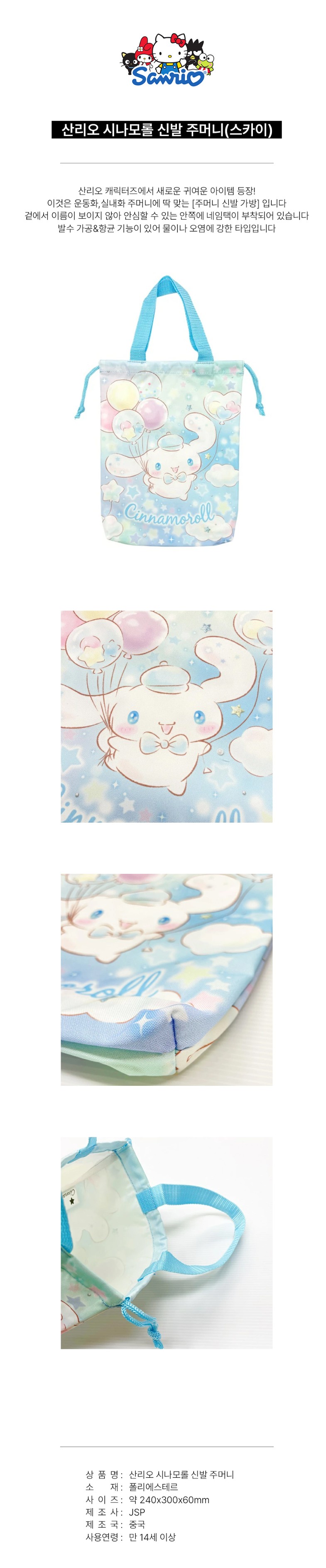 산리오 시나모롤 25신발주머니 실내화 가방 (스카이)