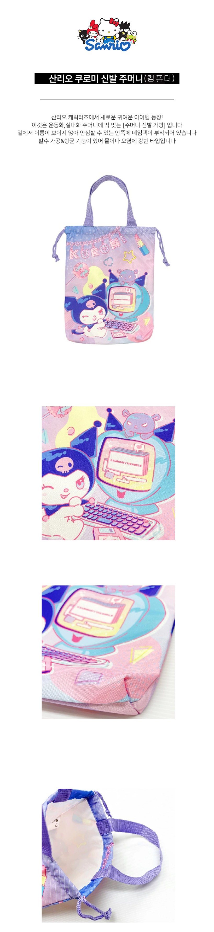 산리오 쿠로미 25 신발주머니 실내화 가방 (컴퓨터)