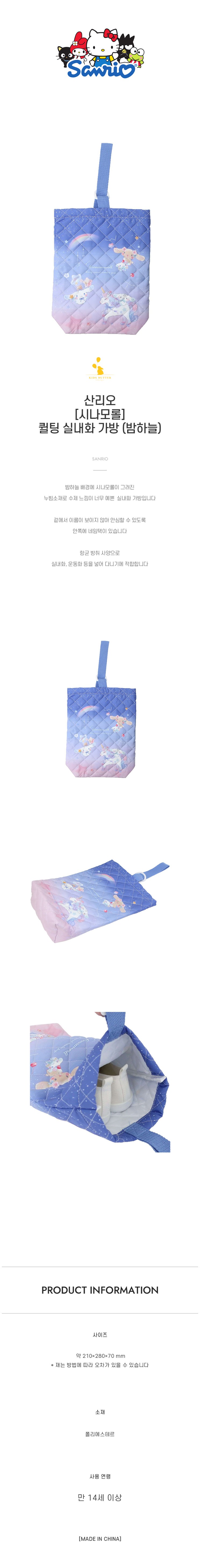 산리오 [시나모롤] 퀼팅 신발주머니 (밤하늘)