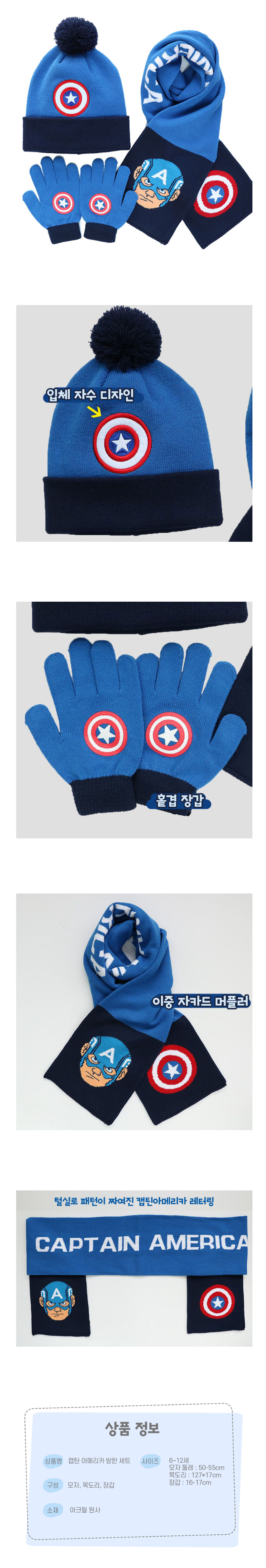 초등 마블 캡틴아메리카 방한용품 세트 (비니타입/모자,목도리,장갑 세트)