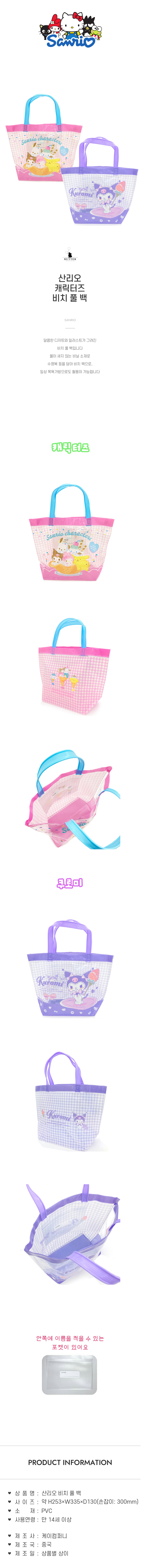 산리오 캐릭터즈 비닐백 비치풀백 수영가방
