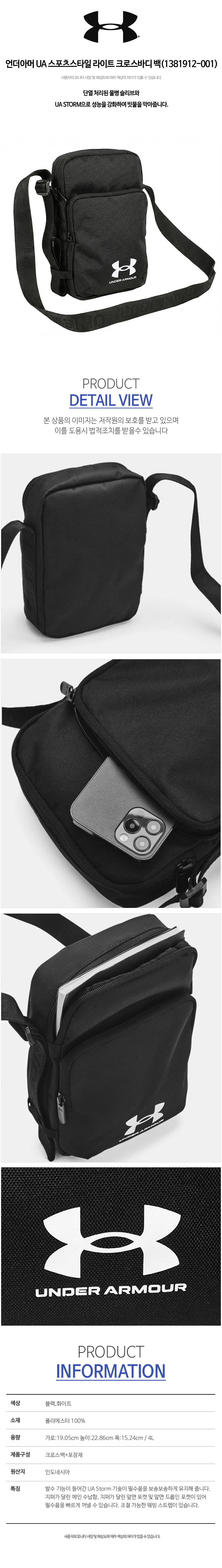 언더아머 UA 스포츠스타일 라이트 크로스바디 백(1381912-001)