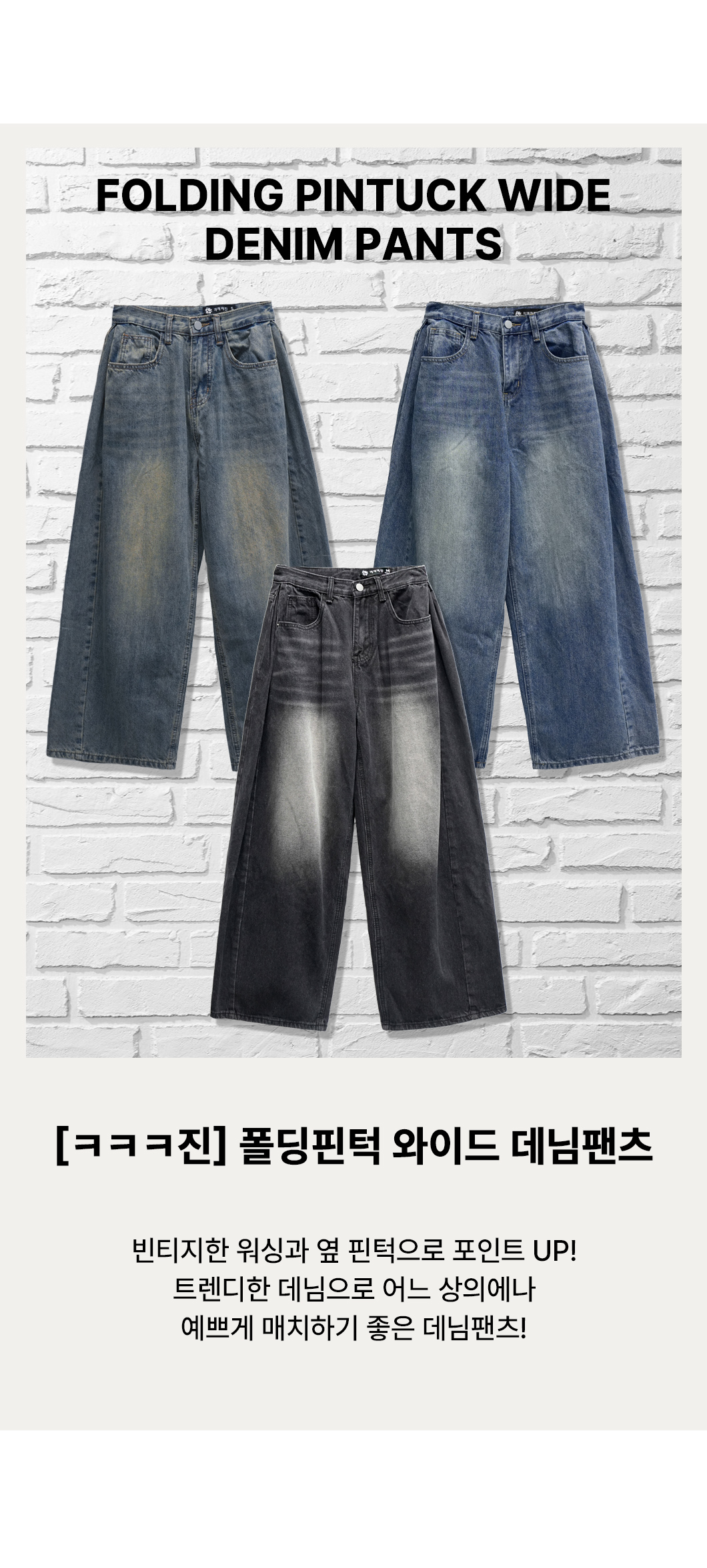 [ㅋㅋㅋ진] 폴딩핀턱와이드데님팬츠-SP/FW