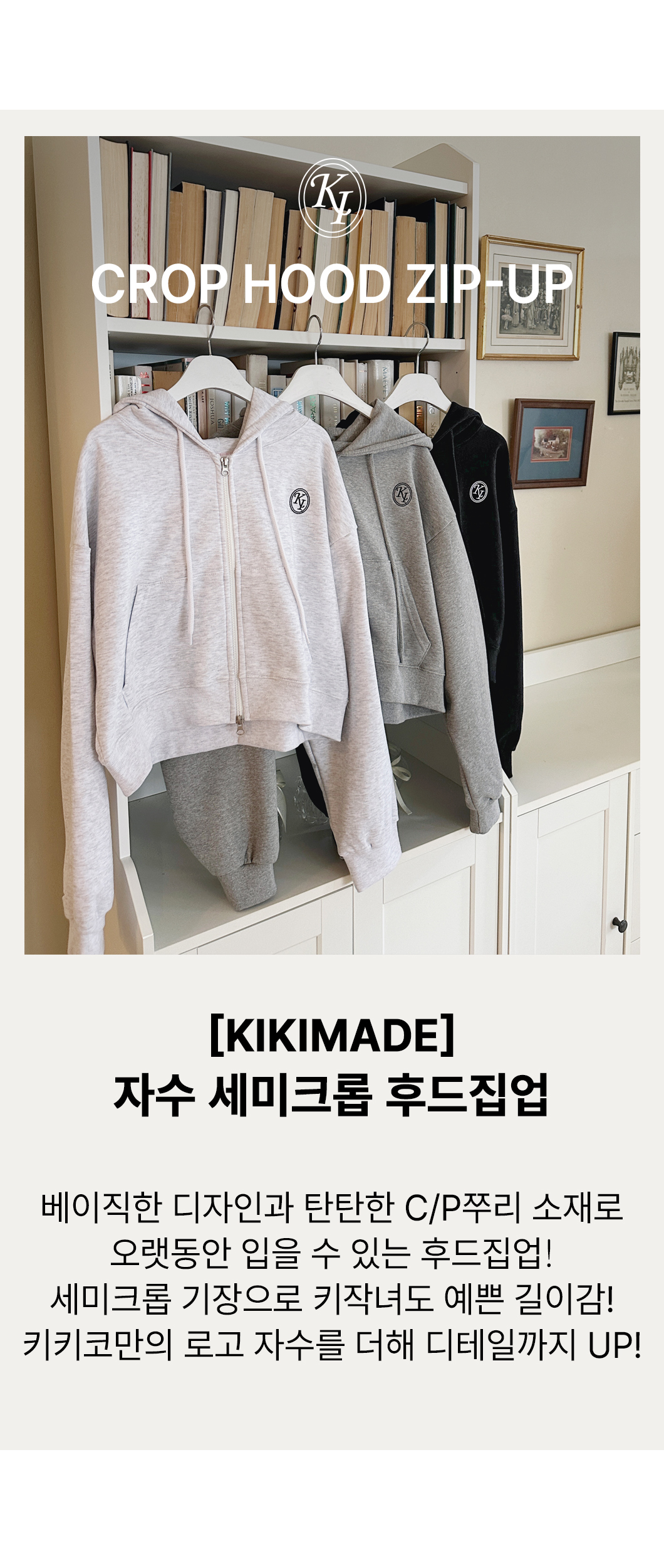 [KIKIMADE] 자수세미크롭후드집업-SP/FW