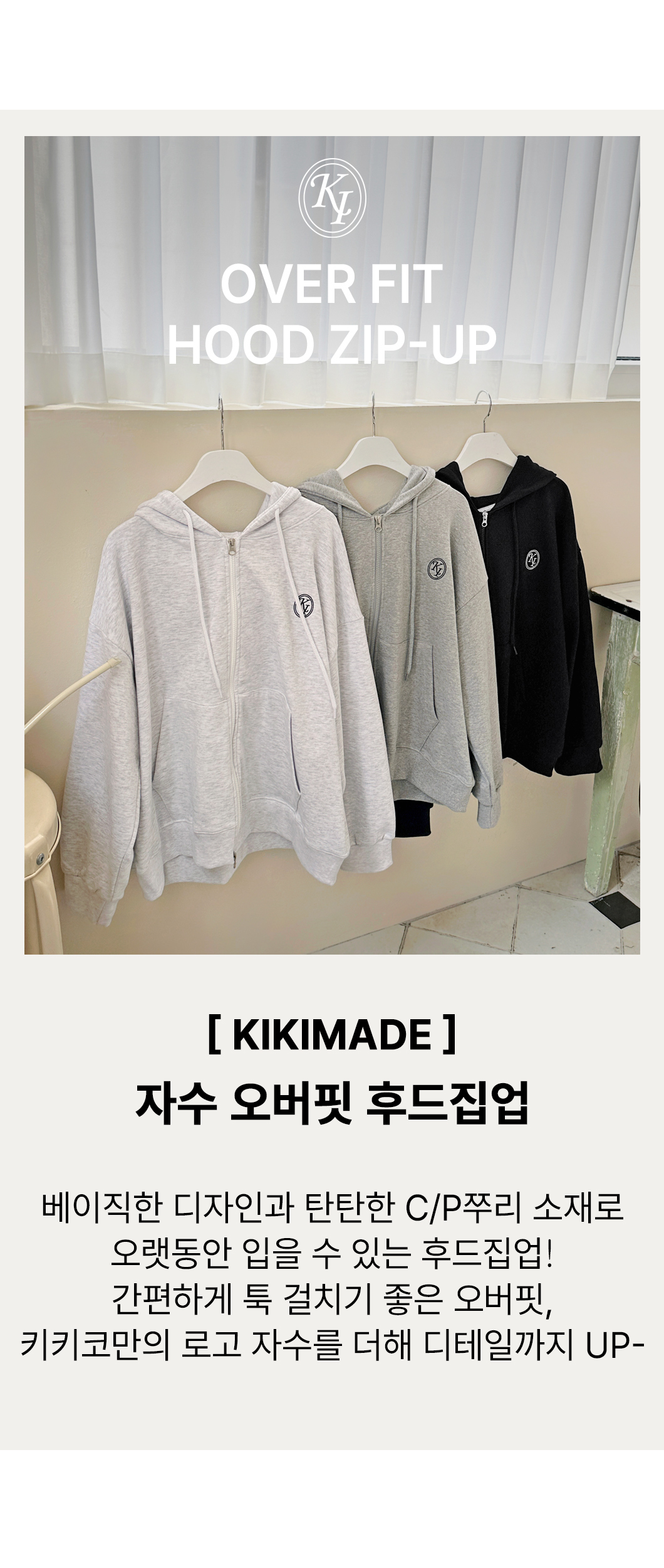 [KIKIMADE] 자수오버핏후드집업-SP/FW