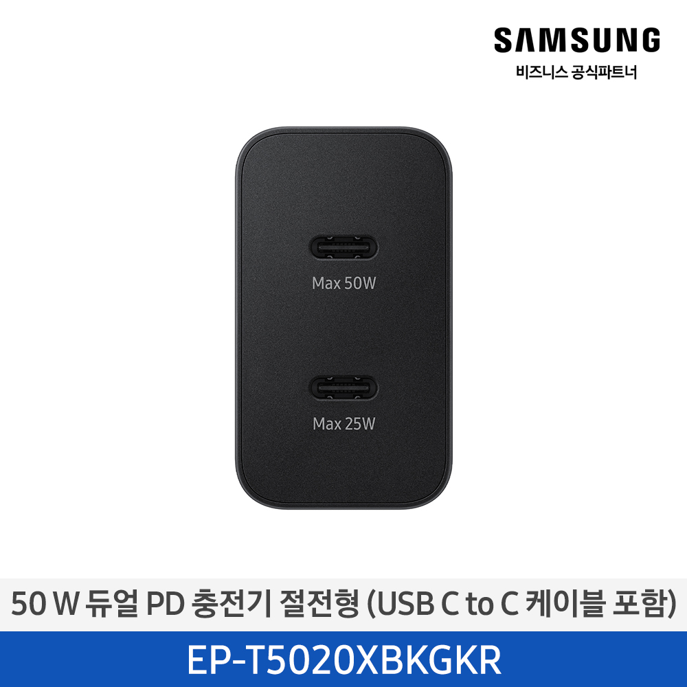 삼성 50W 듀얼 PD 충전기 절전형 (USB C to C 케이블 포함) EP-T5020XBKGKR
