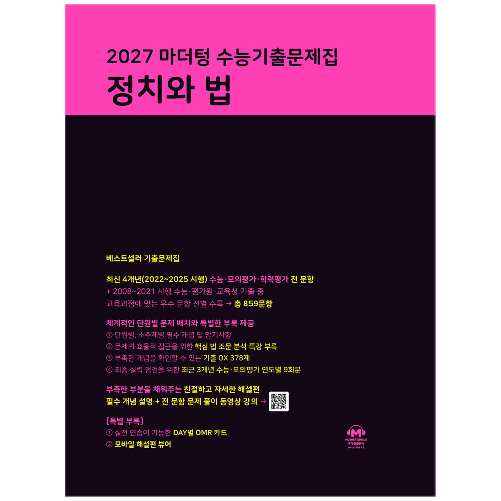 [마더텅] 2027 마더텅 수능기출문제집 정치와 법 (2026년) 2027 수능 대비